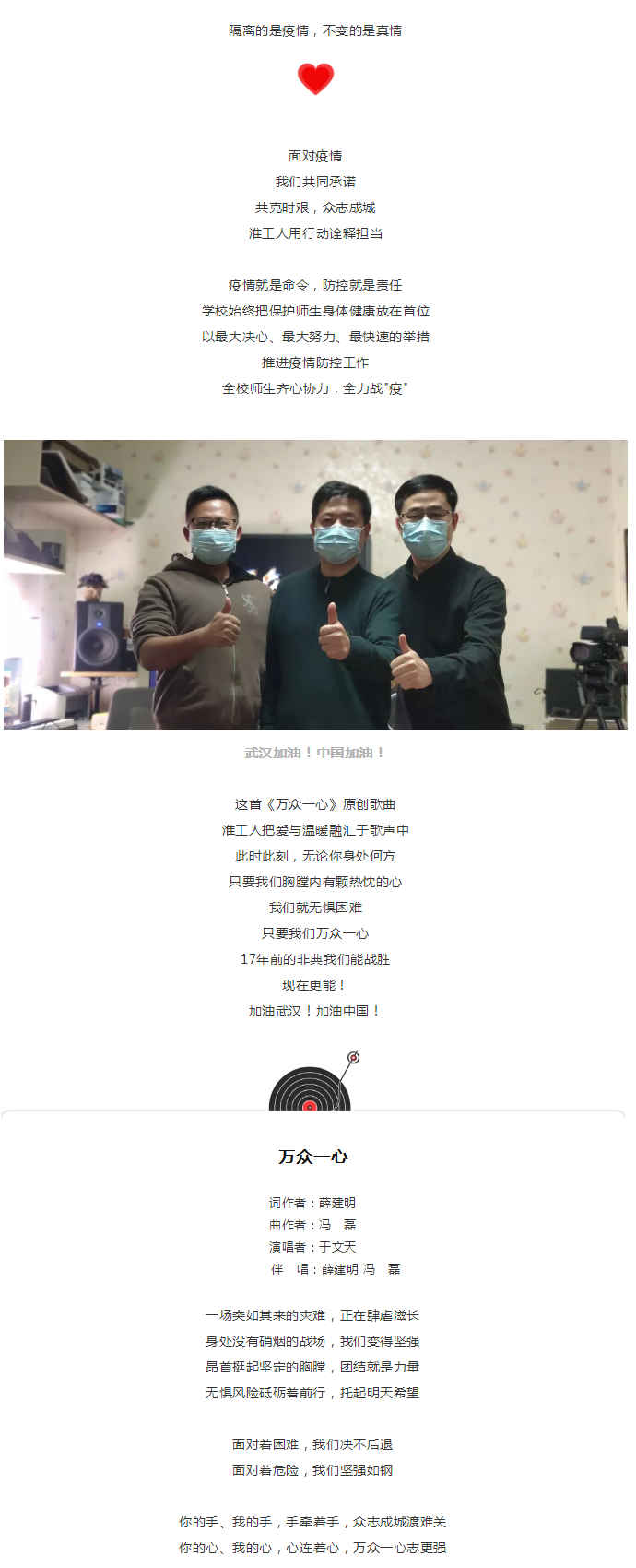 淮工原创歌曲《万众一心》暖心上线,武汉加油!中国加油!